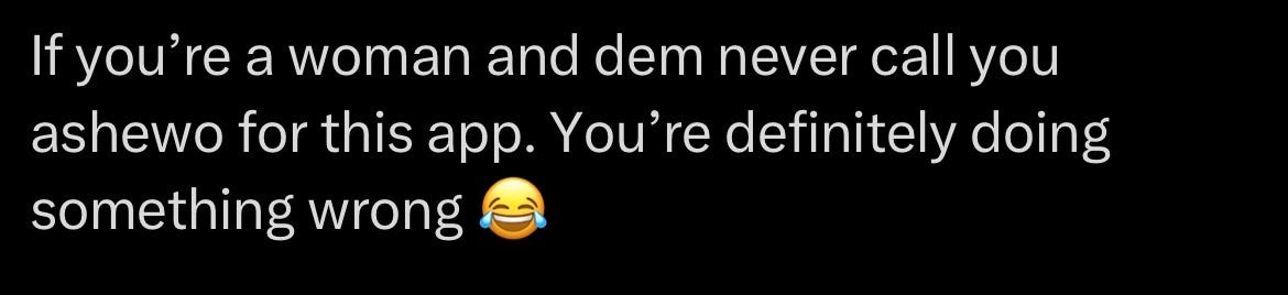 I don’t know why women crash out for being called Ashewo. I was called a prostitute by a creep who checked my TikTok and assumed I was changing apartments. Meanwhile, the houses belong to either me or my boyfriend at the time, and you’d mostly just see my front door. I simply laughed, because how entitled can a stranger be? Someone who doesn’t know me, and the only reason we were having a conversation was because he begged for a date. And when I say begged, he was constantly asking for two weeks straight.
